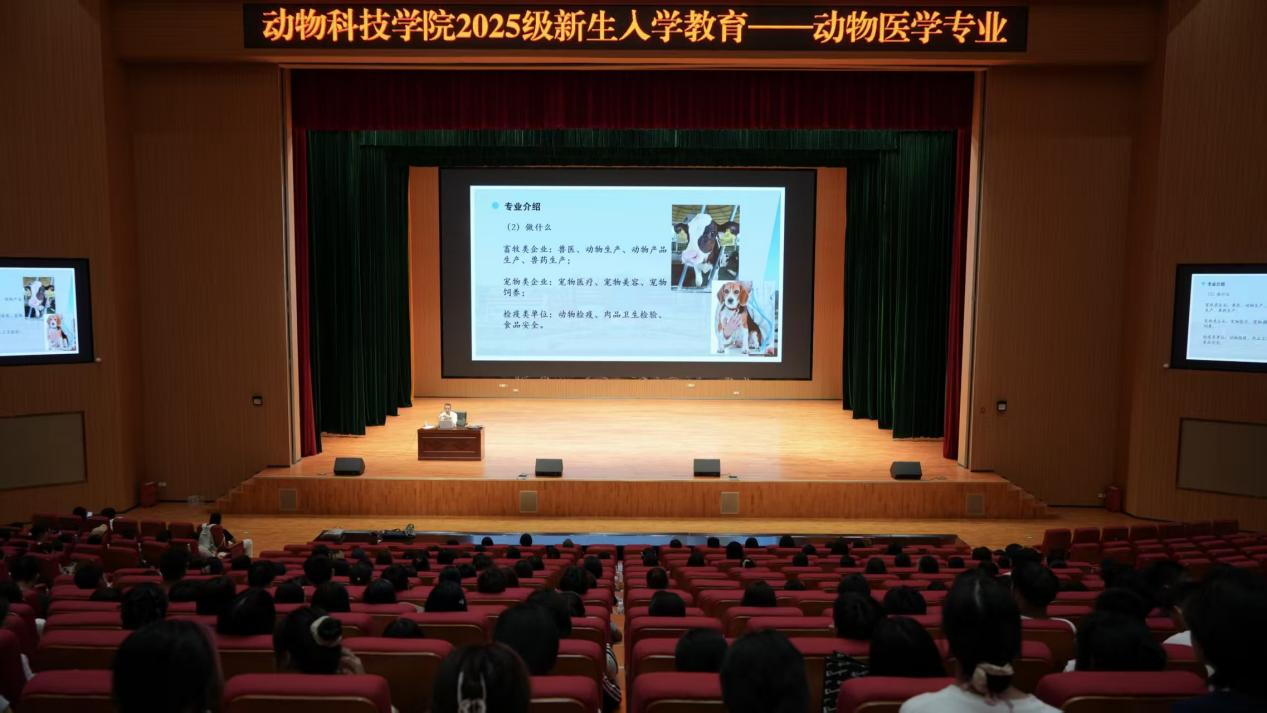 在专业介绍环节,张智博、汤秀城、周华波三位老师分别对畜牧兽医、动物医学、宠物专业进行了深入解读。张智博老师指出畜牧兽医专业兼顾“畜牧养殖”与“疫病防治”,聚焦畜禽健康高效养殖与疫病防控;汤秀城老师强调动物医学专业以动物疾病诊疗为核心,覆盖畜禽疫病防控、宠物医疗及动物公共卫生等领域。周华波教授介绍了宠物专业分为“医疗”和“养护训导”两大方向,分别侧重宠物疾病诊疗与护理,以及宠物饲养、行为训练与美容。这种全面的专业认知教育是新生入学教育的关键一环,其目的在于助力学生树立稳固的专业观念、确立明确的学业目标,为后续专业课程的学习打下坚实基础。