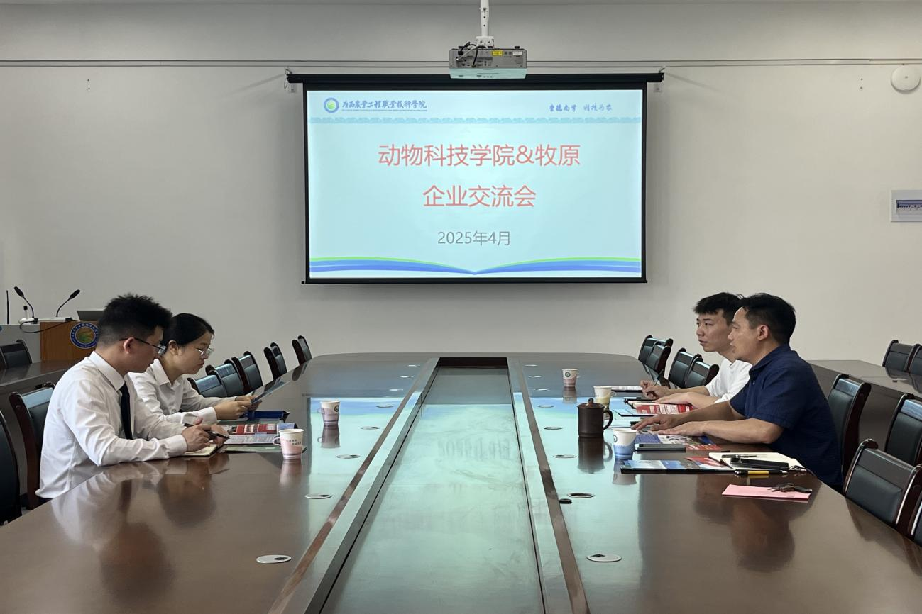 会前,动物科技学院院长李显携学院实习就业管理团队与两位企业代表举行座谈,双方围绕企业发展现状、学校人才培养特色及校企合作模式等议题展开深入交流,并就共建产学研合作平台达成初步共识。