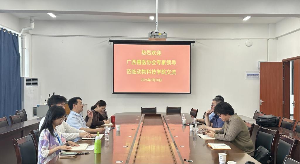2025年3月26日,广西兽医协会会长黄伟坚率队,广西兽医协会常务理事潘杰、副秘书长张红云、教育培训中心主管韦碧燕以及南宁市悦牧职业技能培训学校招生办主任张艺沥莅临我院,就实习就业、岗课赛证、社会服务及科研项目合作等具体事宜展开深入探讨并达成多项共识,共绘行业发展新蓝图。
