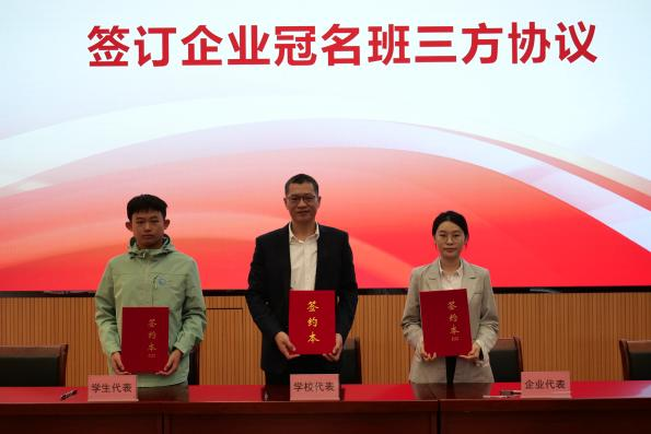 接下来,PP电子游戏网站莫嘉凌副校长与冠名班学生代表、企业代表签订了冠名班三方协议。
