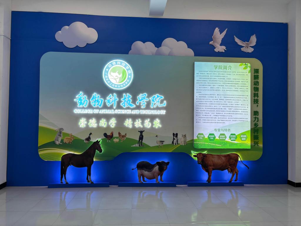 走进学院,首先映入眼帘的是大厅内“崇德尚学,科技为农”的醒目标语,彰显着学院的使命与追求。文化墙上,学院发展历程娓娓道来,动物标本与图文并茂的科普展板交相辉映,营造出浓厚的专业氛围,使师生在潜移默化中增强对动物科技的热爱与认同。