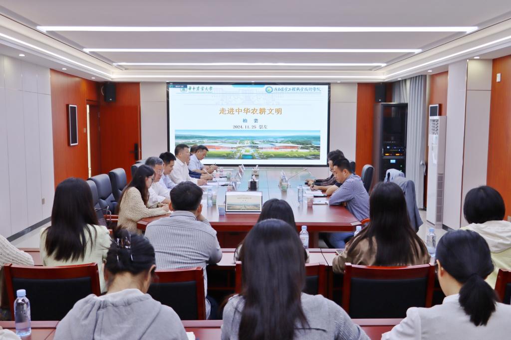 11月26日,华中农业大学农业历史研究中心主任、二级教授柏芸到PP电子指导农耕文化馆的筹建工作,并以“走进中华农耕文明”为主题作专题学术报告。学校党委书记马敏,党委副书记、纪委书记黄仁望,党委宣传部部长,动物科技学院、海洋与渔业学院、食品工程学院、农业与生物工程学院相关负责人和教师代表共44人参会。