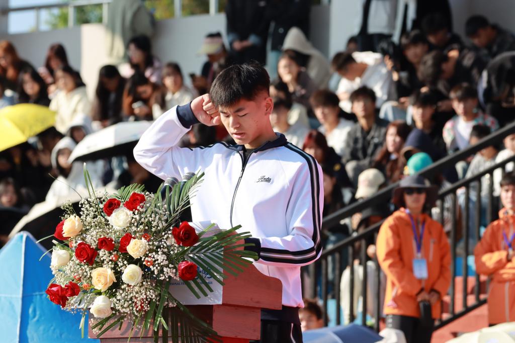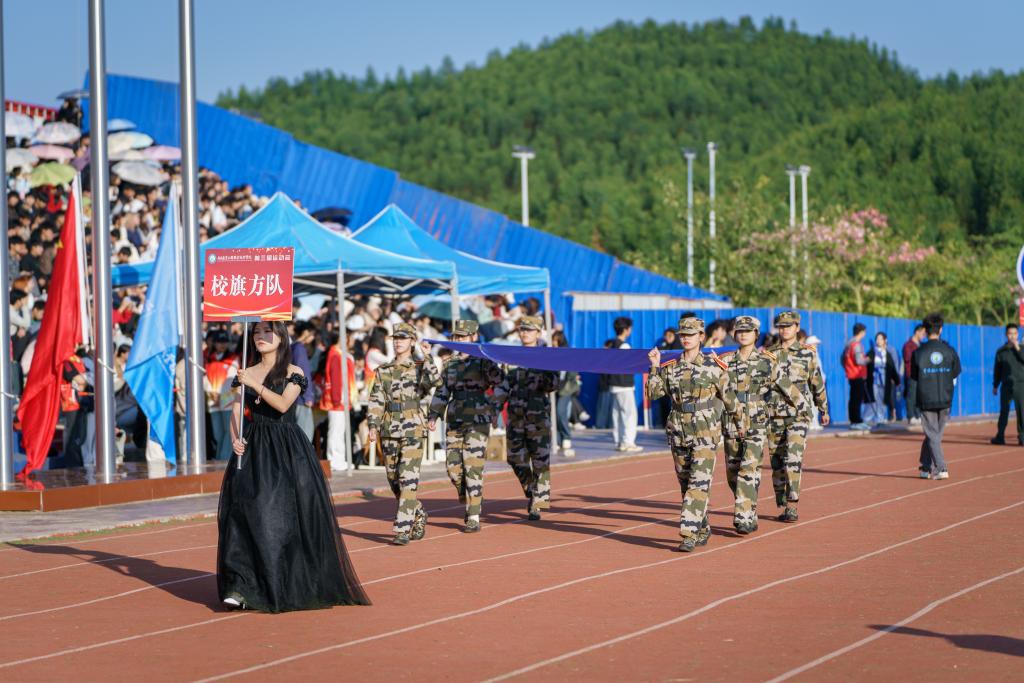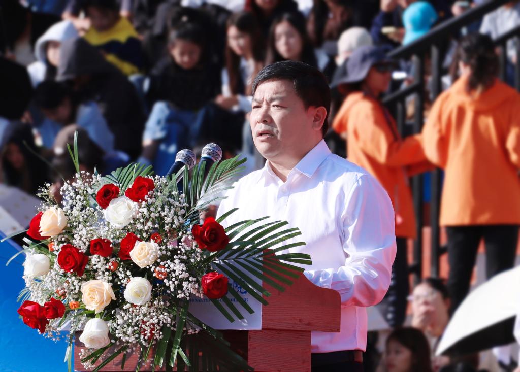 学校党委副书记、校长李振科在开幕式致辞中表示,体育不仅能够锻炼身体,增强体质,还能够培养人们的坚韧意志和团队精神。我们不仅要重视学术教育,更要注重素质教育,让每一位同学都能在体育活动中找到属于自己的舞台,展现自己的风采。他向全体师生提出三点希望和要求,一是希望全体运动员能够发扬相互了解、友谊、团结和公平竞争的奥林匹克精神,不畏强手,敢于拼搏,充分展示自己的实力和风采。二是希望全体裁判员和工作人员能够恪尽职守,严于律己,确保比赛的公平、公正和有序进行。三是希望全体师生能够遵守纪律,维护秩序,文明观赛,为运动员加油鼓劲。