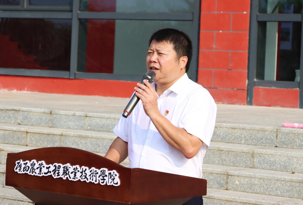 马敏在致辞中表示,自建校以来,学校始终牢记为党育人、为国育才的初心使命,秉持“崇德尚学,精技为农”校训。学校思想政治教育基地的建设,是全面贯彻党的教育方针、落实立德树人根本任务的生动实践,是深化党史学习教育、加强思想政治教育的重要举措,是落实“时代新人铸魂工程”,推进“五育并举”融合育人工作的重要抓手,也是推动学校“红+绿”校园文化特色品牌建设和精神文明建设的重要载体。他强调,思想政治教育基地为师生提供了一个学习党史、感悟初心、担当使命的重要平台,希望各部门、二级学院真正把这个基地“建设好、管理好、使用好”,将党史学习教育潜移默化地融入到广大师生的思想和行动中,教育引导师生深刻理解党的初心使命,培养担当民族复兴大任的时代新人。