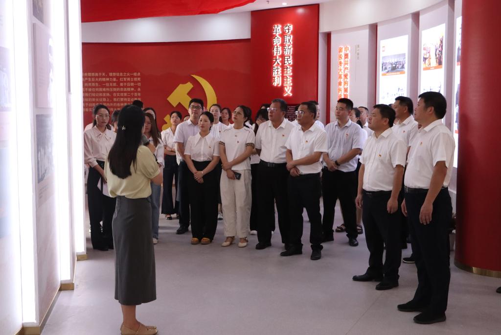 揭牌仪式结束后,与会人员在讲解员的带领下参观思想政治教育基地,基地展出内容跨越新民主主义革命时期、社会主义革命和建设时期、改革开放和社会主义现代化建设新时期、中国特色社会主义新时代,贯穿党的一大到二十大的百余年历程,展出图片574张,文字4.2万字,视频100个,生动展现党的光辉历程和伟大成就。校领导对基地建设表示肯定,希望发挥思想政治教育基地协同育人作用,培养具有坚定理想信念的社会主义建设者和接班人。