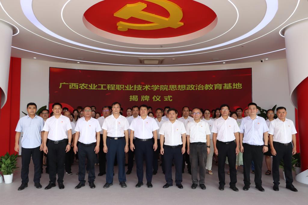 9月20日上午,学校思想政治教育基地揭牌仪式在图书馆一楼举行,学校党委书记马敏,党委副书记、校长李振科,党委副书记、纪委书记黄仁望,副校长李祖培、覃效敏,总会计师韦炜出席仪式并共同为学校思想政治教育基地揭牌。各部门、二级学院负责人,学校思政教及学生代表约100人参加仪式。揭牌仪式由党委副书记、纪委书记黄仁望主持。