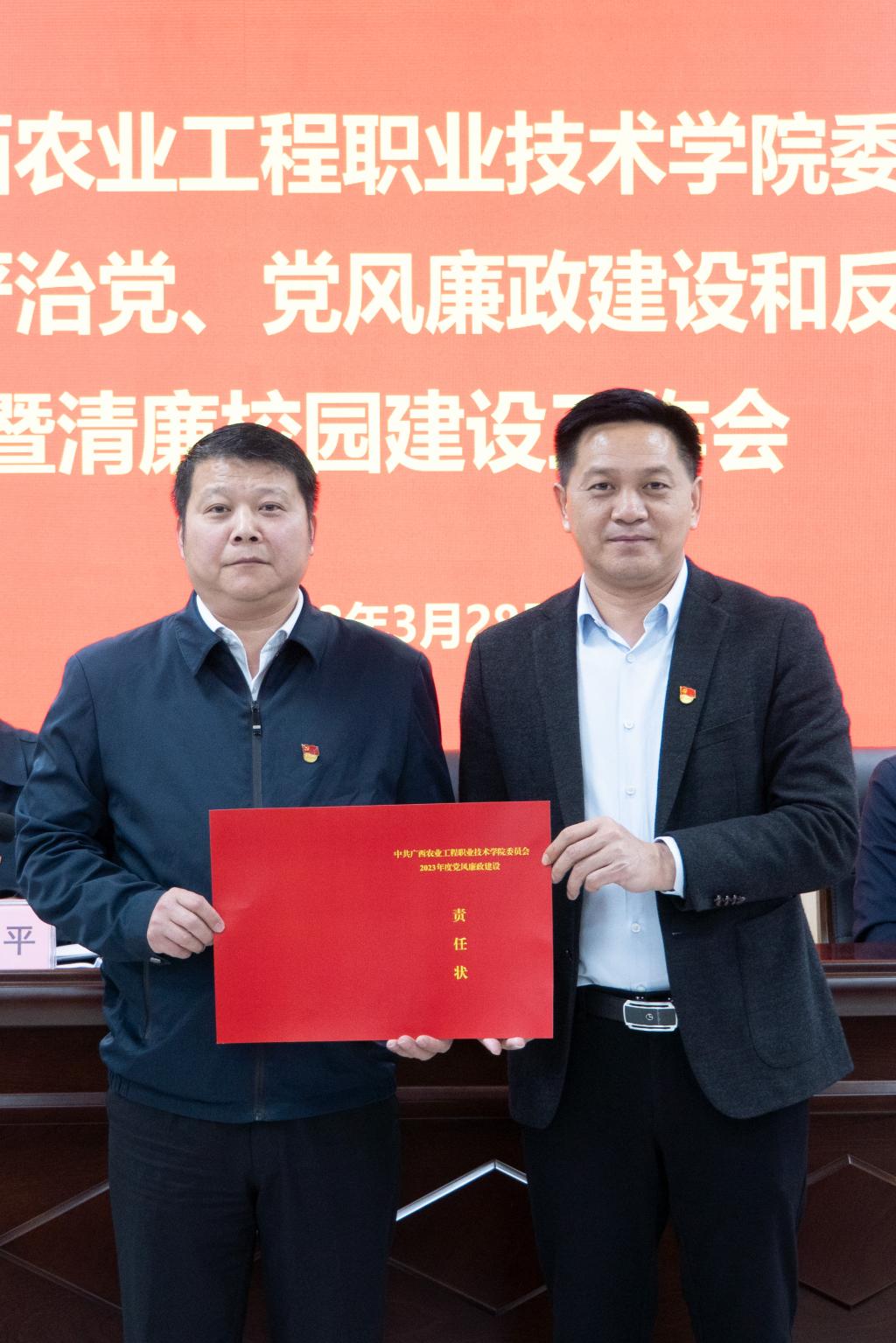 会上各党支部书记向学校党委书记马敏递交了2023年度党风廉政建设责任状。