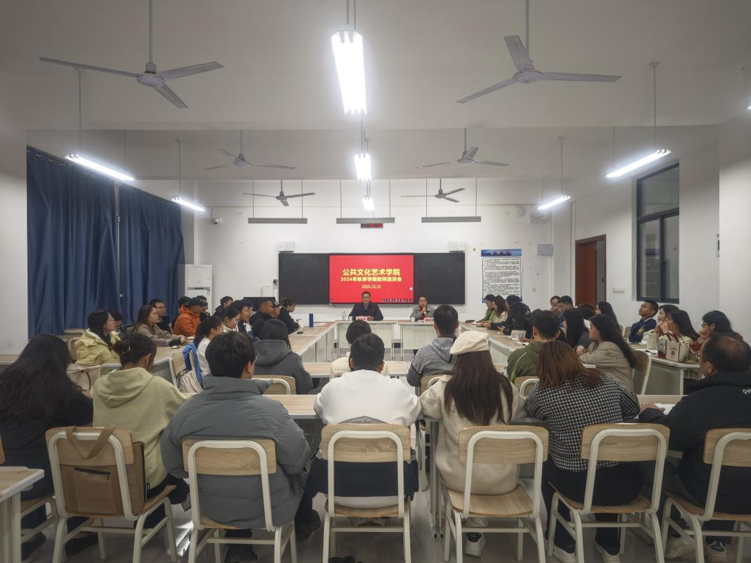 为进一步提高学院教学管理质量,更好了解老师在教学工作存在的问题和不足,提升学生对教学工作的满意度,我院于2024年12月11日在3栋教学楼205教室召开学生座谈会。公共文化艺术学院院长覃勇燕、学院教学管理人员...