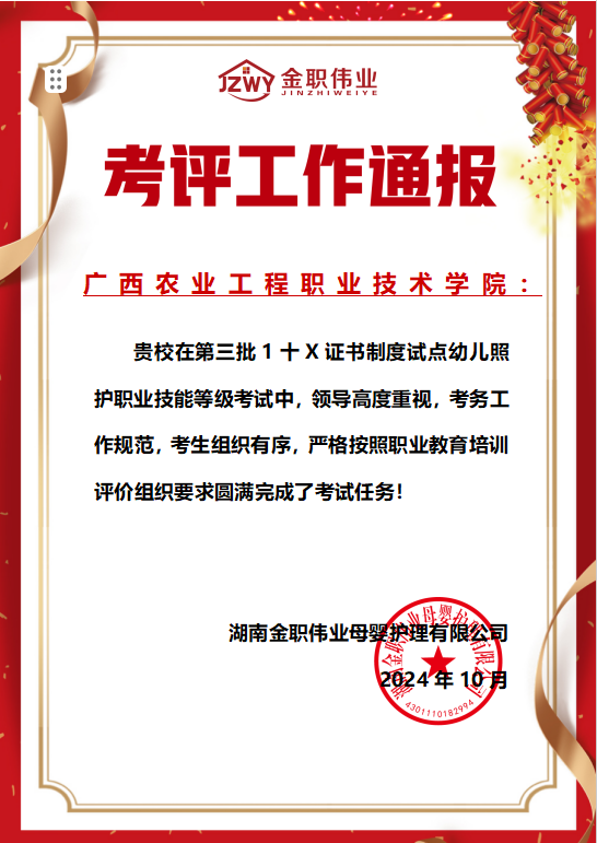 2024年10月29日,公共文化艺术学院组织开展2024年“1+X”幼儿照护职业技能等级证书(中级)考试,婴幼儿托育服务与管理专业共521名学生参加本次考试,在学校领导和全体考务人员的共同努力下,考试目标顺利完成,考试通过率达96.5%。