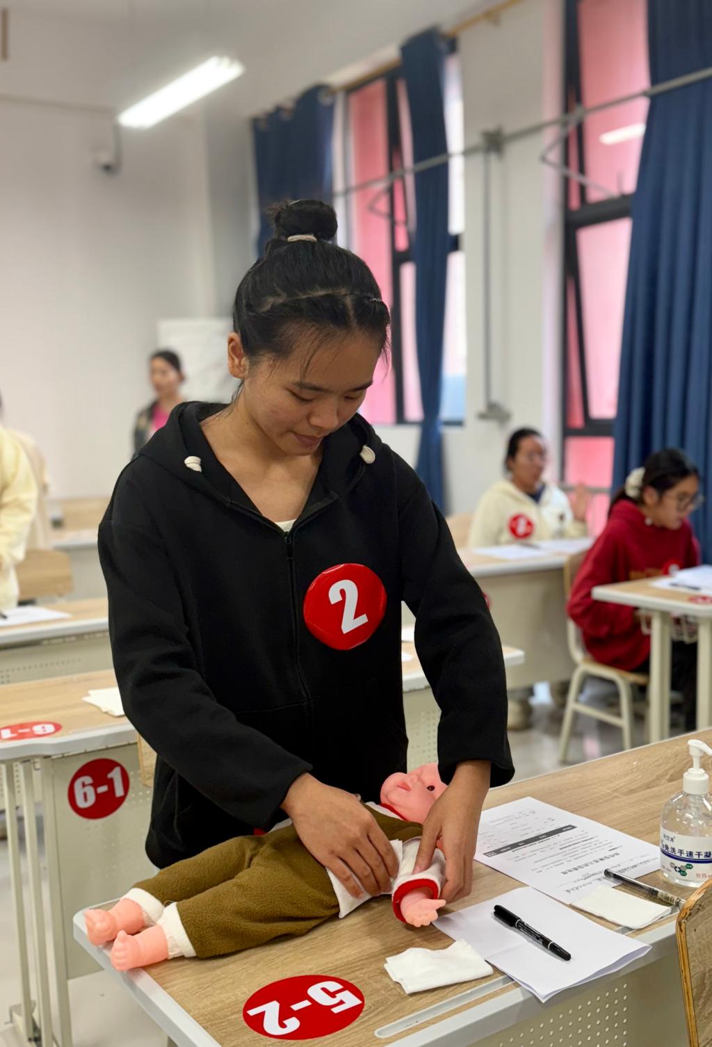 考试分为理论考试与实操考试,从多方面考察学生的幼儿照护专业能力。为确保考试工作顺利完成,公共文化艺术学院提早部署工作,召开考务工作布置会、监考工作培训会,严格参照“1+X”考试方案要求制定工作细则,结合考试流程与注意事项细化工作内容,划分责任到岗到人。全体考务人员各司其职,互相配合,共同保证考试顺利进行。考生自觉遵守考试纪律,考试过程中沉着冷静,认真完成了考试内容。