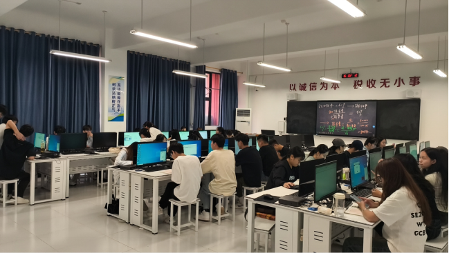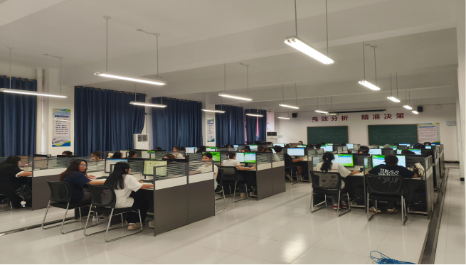 大数据与会计专业实训室位于PP电子4号教学楼(工商财经学院-财经楼)2楼,占地面积约1425.6平方米,目前有4个专业实训室:201财务大数据应用实训室、202 管理会计沙盘实训室、204智能出纳实训室、205数智财税综合实训室。