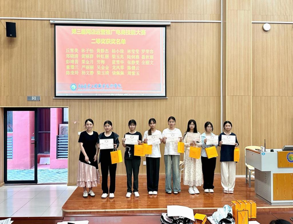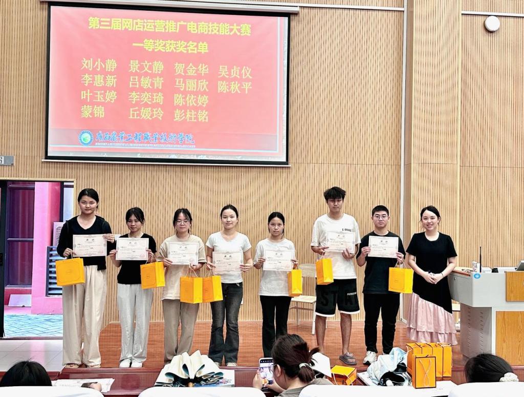 本次电商技能大赛颁奖典礼的成功举办,不仅为同学们提供了一次难得的实践机会,也进一步推动了学校电子商务专业的教学改革与发展。它激发了更多学生对电商领域的兴趣和热情,培养了学生的创新精神和实践能力,为学校电商专业人才的培养注入了新的活力。相信在未来的学习和工作中,这些获奖团队以及更多怀揣梦想的同学们,将继续在电商领域探索前行,用青春和智慧书写属于自己的精彩篇章。