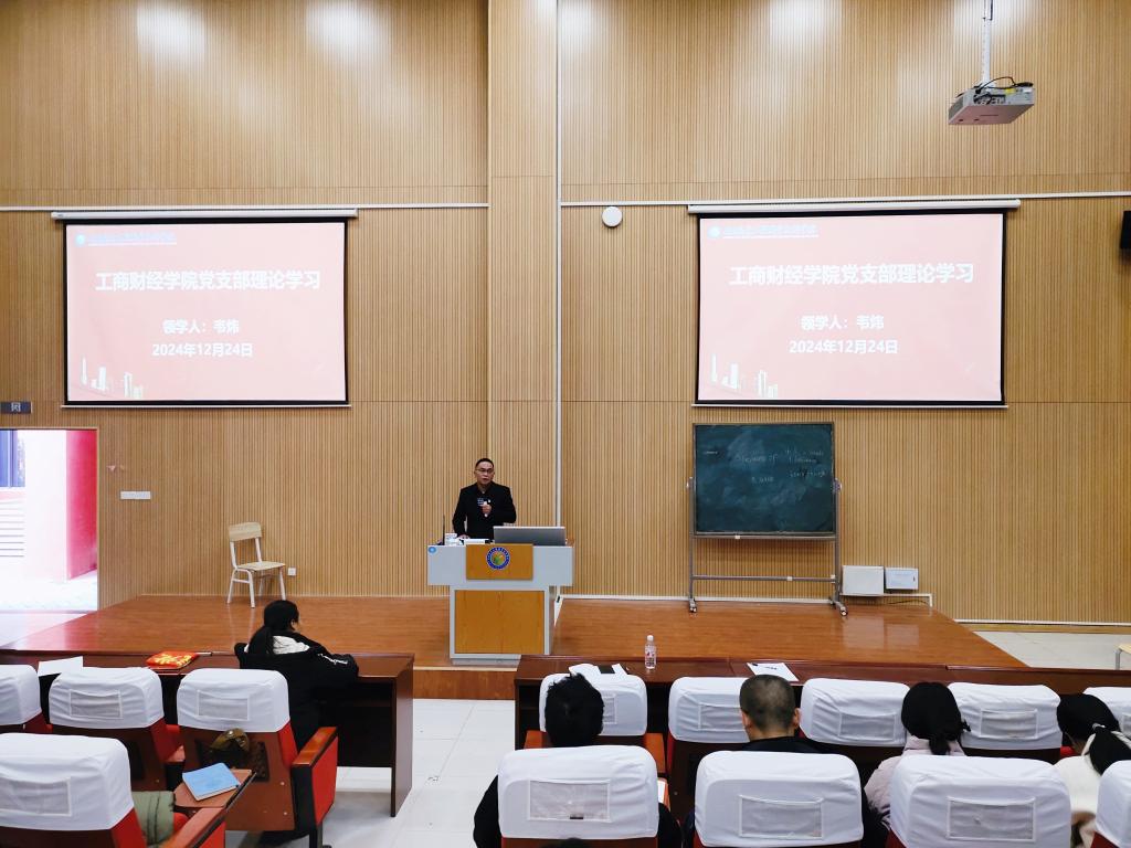 12月24日,工商财经学院党支部在2号阶梯教室开展了理论学习。学校总会计师韦炜,我院党支部全体党员、发展对象、入党积极分子参加此次活动,旨在进一步提升理论素养,切实提高党员干部、学生干部的政治觉悟和理论水平。