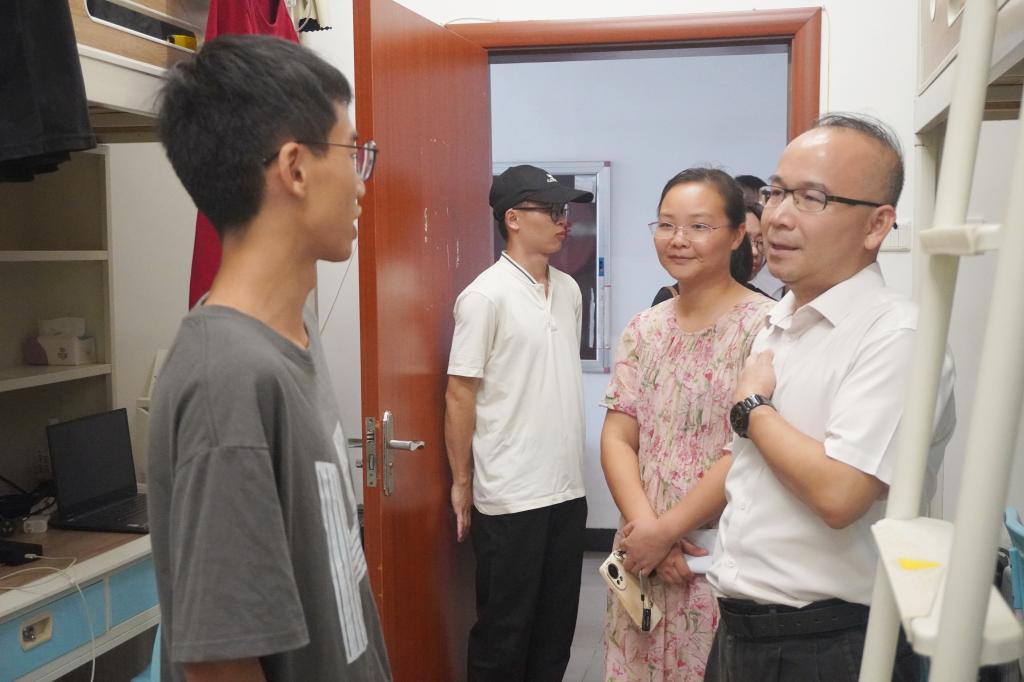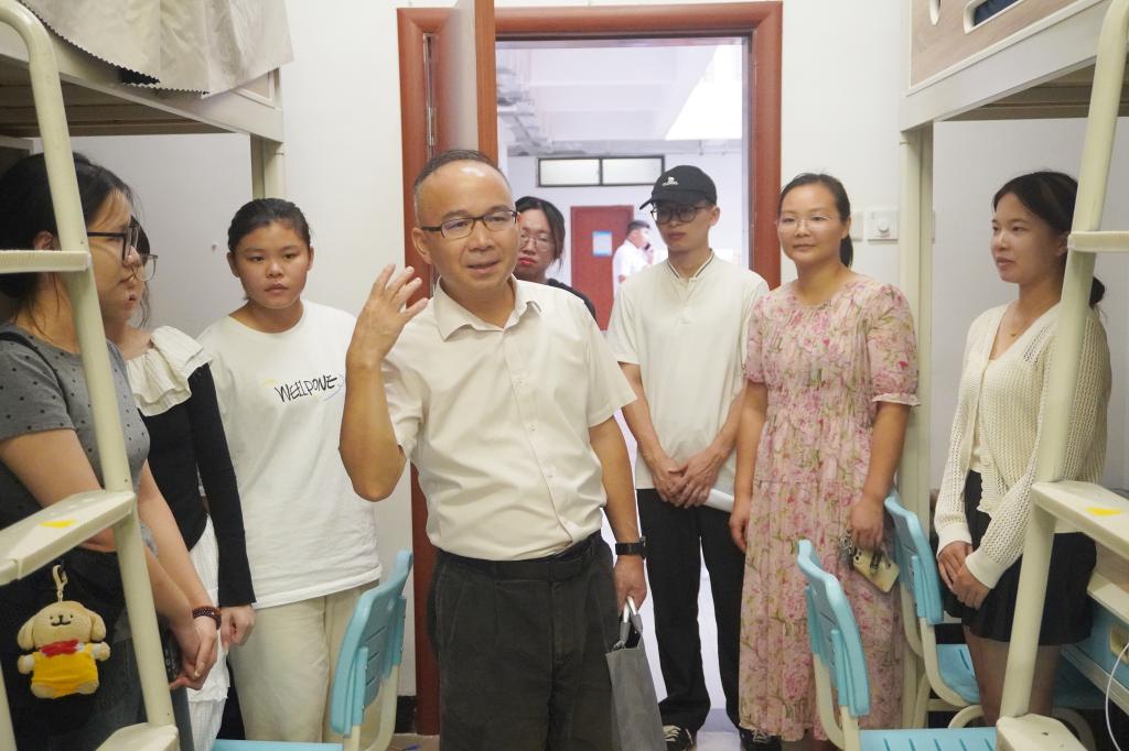 走访过程中,李祖培对同学们的到来表示热烈欢迎,对宿舍的生活设施、水电供应情况、安全隐患等方面进行细致的询问和排查,他希望同学们把学校和宿舍当成自己的家,同学之间要相互关照,珍惜大学生活,一起度过一段充实、难忘的大学时光;同时,他提醒学生要注意用电安全,保持宿舍干净整洁、舒适、安全。