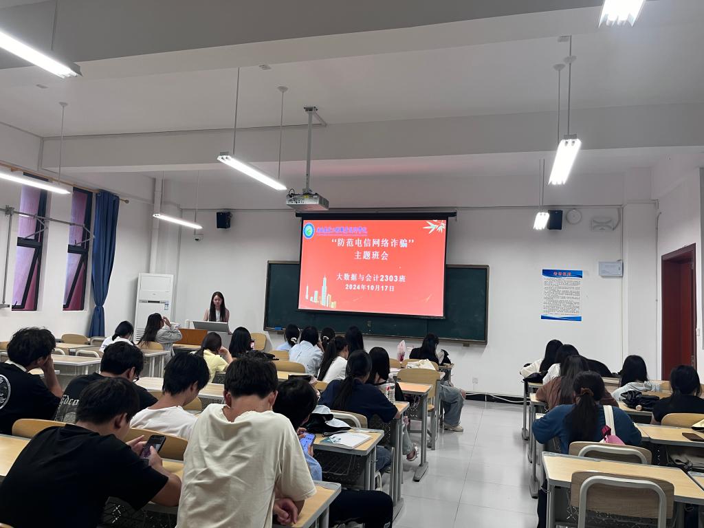 在开展《防范电信网络诈骗,共筑安全校园》主题班会中,老师们讲解了电信网络诈骗的定义、类型、危害以及防范技巧等相关内容,组织了学生们观看一系列反电诈教育宣传片,并以大学生电信诈骗案例作警示教育,组织学生们积极参与讨论,分享他们在日常生活中遇到或听说的电信诈骗案例。通过这些方式,让学生们更深入地了解电信诈骗的常见类型和手法,使学生进一步掌握电信诈骗的特点和有效的防范措施从而提高他们的警惕性,确保他们在日常生活中能够更好地保护自己,远离电信网络诈骗的侵害。