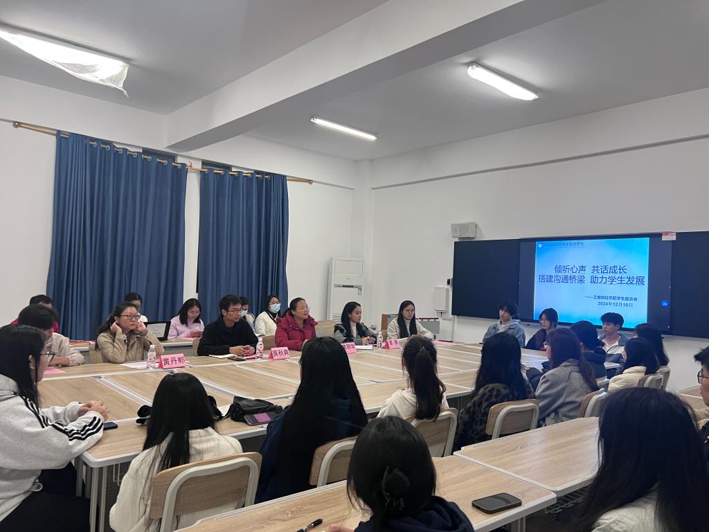 12月10日,工商财经学院在4栋407室召开了主题为“倾听心声,共话成长——搭建沟通桥梁,助力学生发展”的学生座谈会。工商财经学院负责人、学工处代表、校团委代表、工商财经学院辅导员以及来自23、24级大数据与会计、电子商务、供应链运营专业的学生代表参加座谈会。