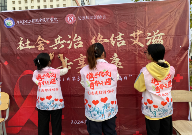 签名留影:在主题展板前,一笔一画,不仅是名字的印记,更是对艾滋病防治承诺的见证。每一张笑脸,都承载着对知识的渴望和对未来的期许,爱与知识就这样在校园里悄然传递。