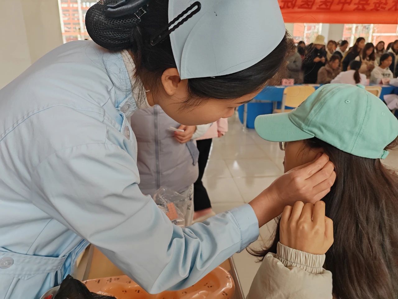 活动中,中医专家们为前来咨询的同学们把脉问诊,针对月经紊乱、内分泌失调、亚健康等常见问题提供专业诊断,并结合中医体质辨识,为每个人提供个性化调理方案。在中医外治特色体验区,耳针、穴位贴敷、雷火灸等理疗项目吸引了众多参与者。大家通过刺激特定穴位,疏通经络,活血化瘀,缓解了痛经、月经不调等症状,感受到了中医理疗的独特魅力。