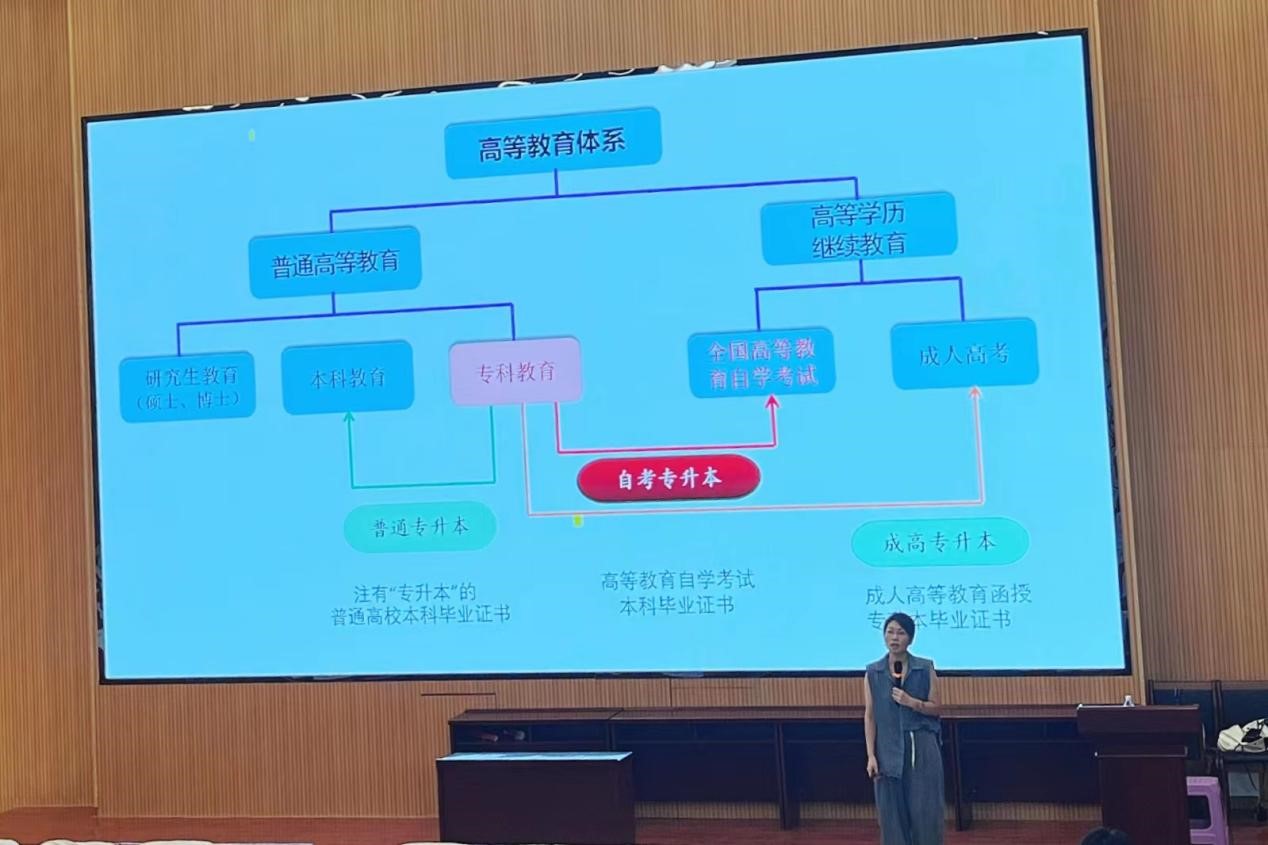 当天下午,广西大学继续教育学院、广西民族大学继续教育学院的老师们同步在学校1号阶梯教室为一千多名2022级在校生开展了自学考试本科宣讲会。宣讲老师们通过对自学考试政策解读、分享已升本学生视频、现场答疑等方式,向同学们系统介绍网络助学班及专本衔接考试的课程设置、备考技巧、自考优势、证书含金量、自考本科通过率等内容,同时为同学们分析了“自学考试升本”对我们高职专科生的重大意义,鼓励同学们珍惜这个难得的机会,积极提升自身的核心竞争力,为今后的就业及继续深造创造有利条件。