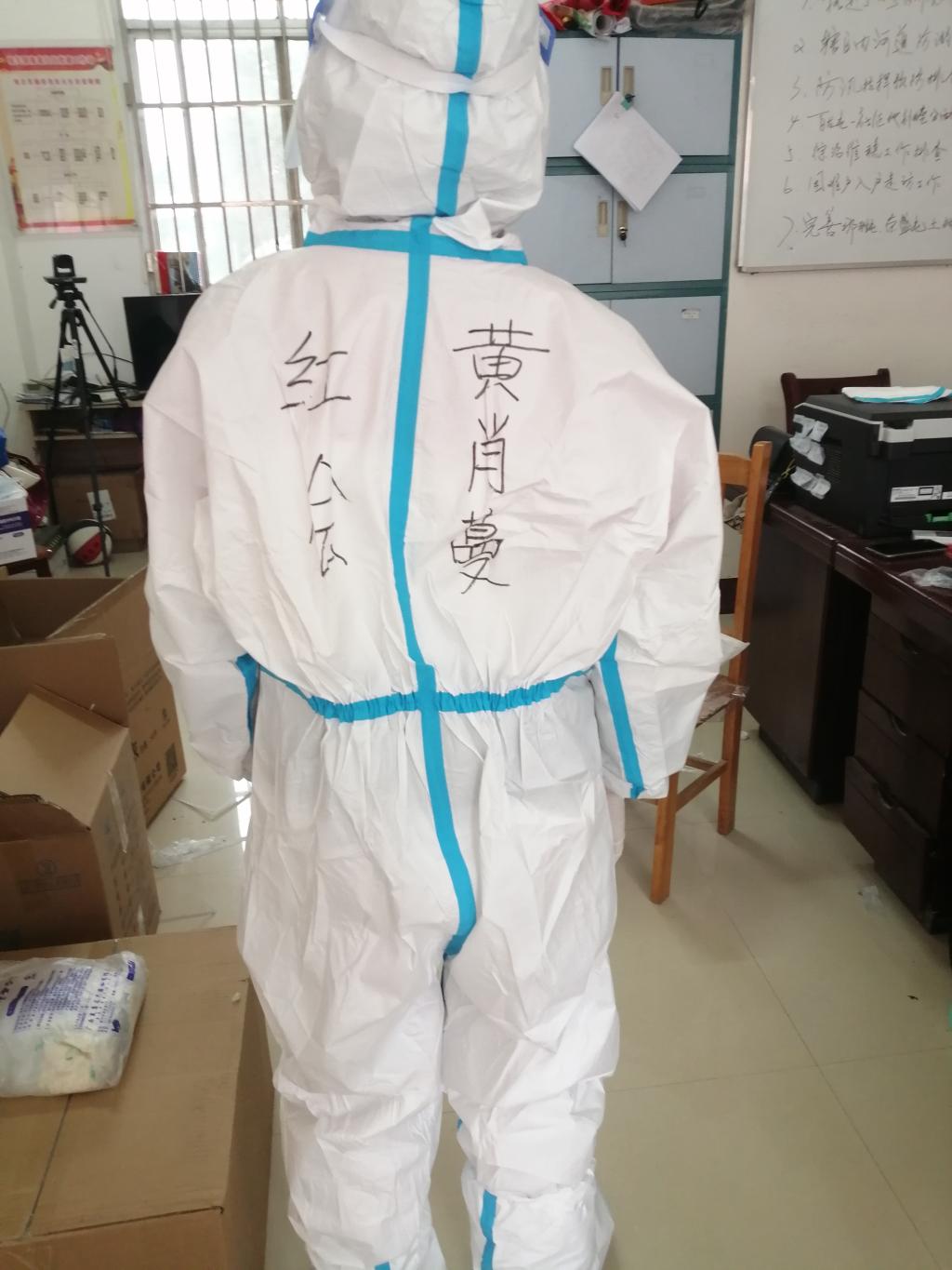 在此轮疫情爆发的重点地区百色市德保县,是2021级畜牧兽医1班黄肖蔓同学的家乡。对于参加此项志愿活动,家里人因为担心她的安全,一开始没有给予支持,但是她还是初心不改,说服了父母,第一时间穿上防护服,投身一线,在寒风中守护家乡的抗疫防线。“穿上防护服自己就像大白一样,守护身边的人,满满的自豪感,浑身上下充满了力量。”她爽朗的笑声感染了大家。