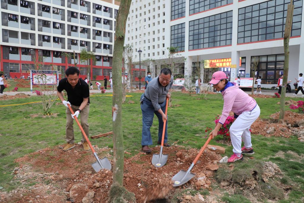 4月12日,我院党委书记马敏带领全体师生在校内开展义务植树活动。