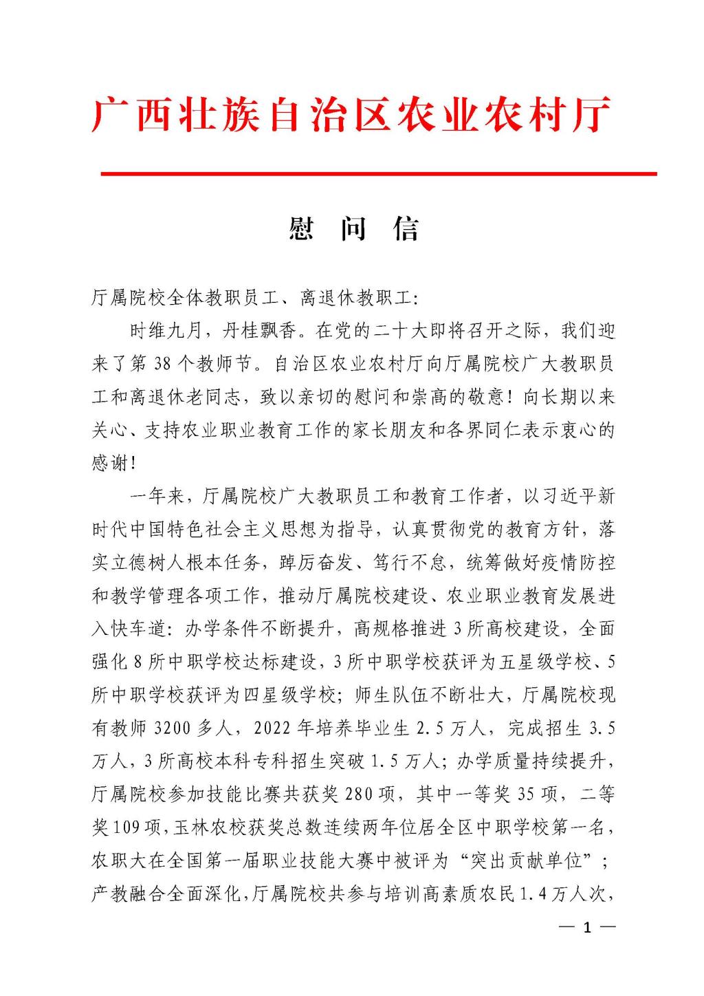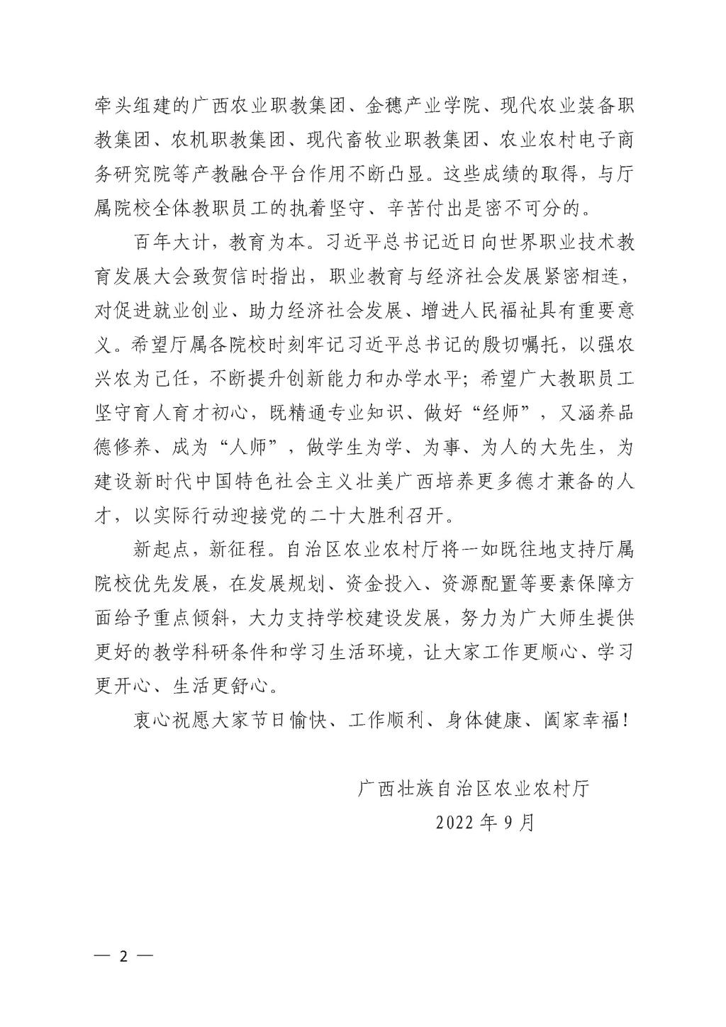 广西壮族自治区农业农村厅2022年教师节慰问信
