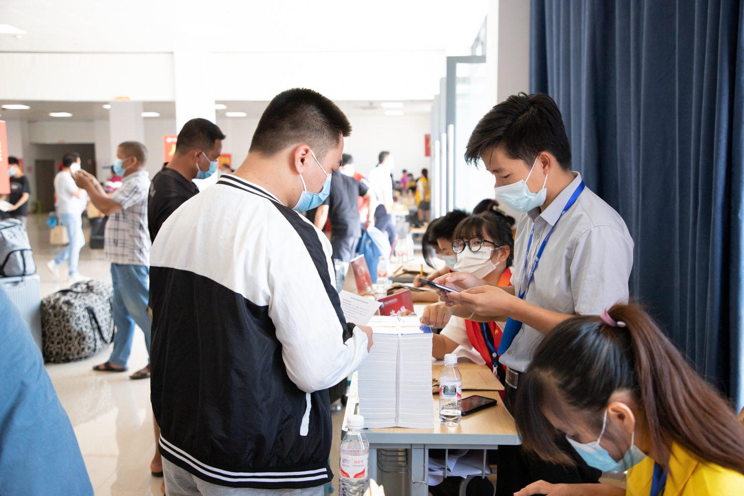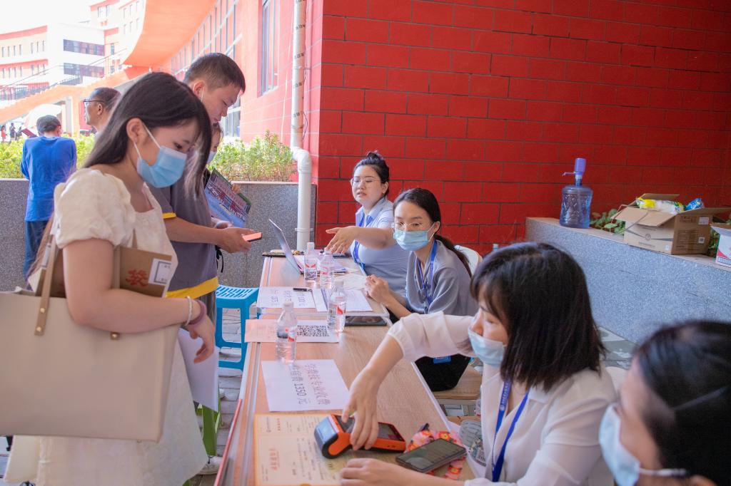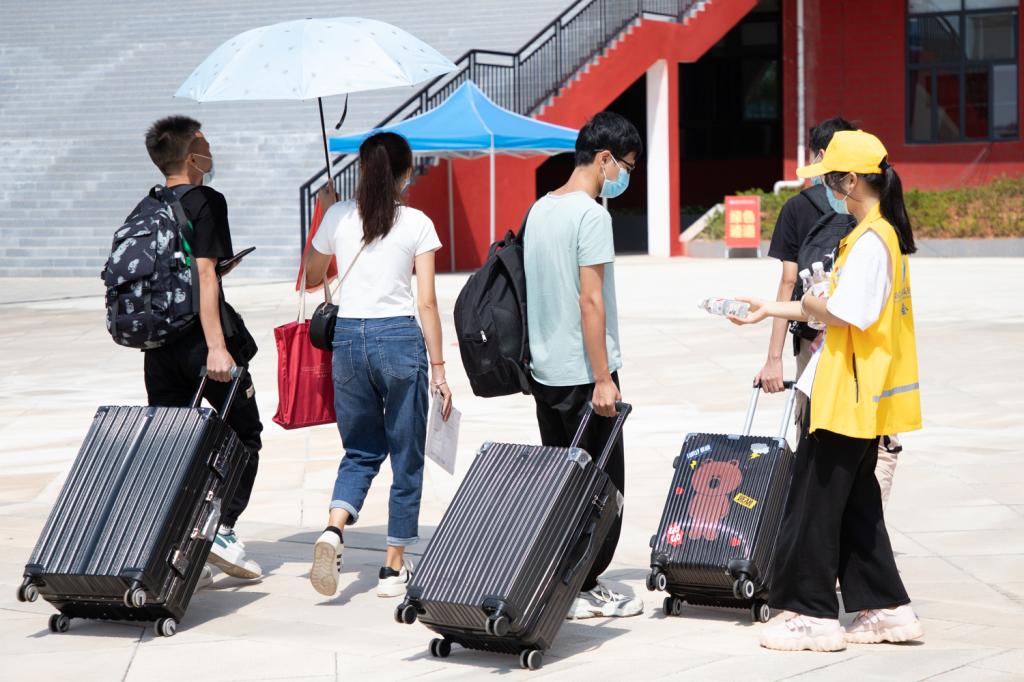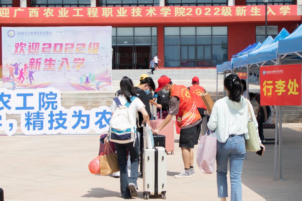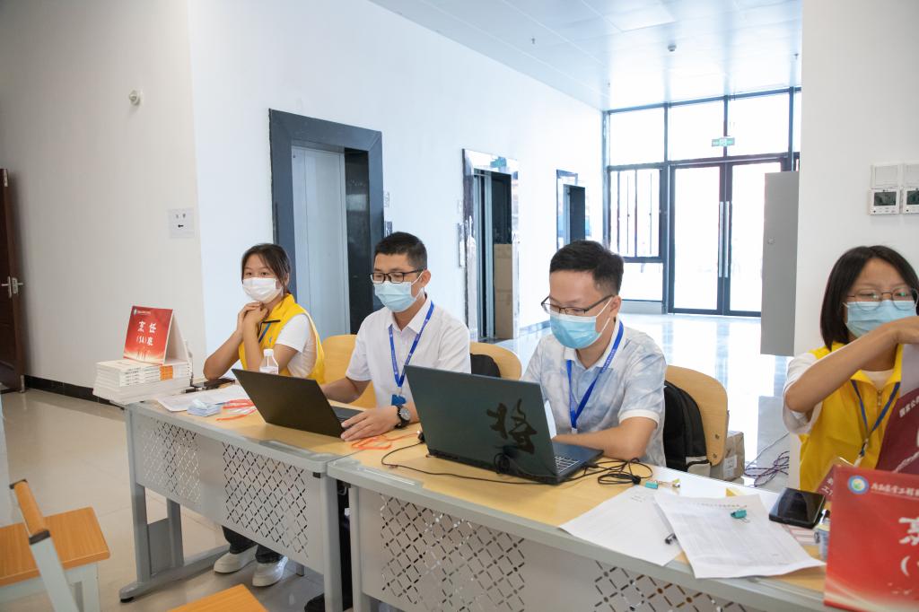 早上7点左右,学校相关部门工作人员、各二级学院教师及身着不同颜色工作服的学生志愿者们早早到位,准备迎接新生。有新生的地方就有志愿者的身影,每当看见新生到校,他们便会主动接过家长手中的行李,护送新生到校门测温,出示健康码、行程卡、48小时核酸检测结果,进校后由学生志愿者们接引到图书馆一楼内的迎新接待服务点办理入学手续,然后将新生们送上校园摆渡车直达宿舍区。志愿者们全过程守护,为新生报到提供引导,帮助他们搬运行李、寻找宿舍位置,志愿者们躬先表率,为学弟学妹们周到热情地服务。