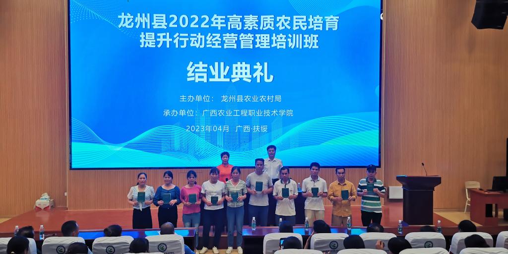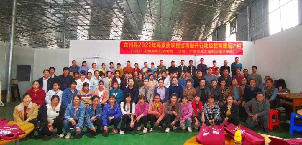 4月24日,为期15天的“龙州县2022年高素质农民培育提升行动经营管理培训班”圆满结课。本次培训由龙州县农业农村局主办,PP电子游戏网站承办,新型农业经营主体和返乡创业青年及村民个体户等共100名学员参加本次培训。