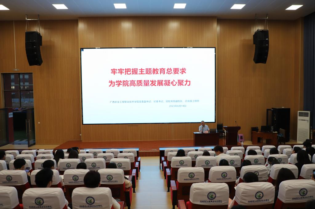 开班仪式后,章红平以《牢牢把握主题教育总要求 为学院高质量发展凝心聚力》为题作专题党课第一讲,从开展主题教育的背景、重要意义、内容等方面进行了深入的解读,围绕“学思想、强党性、重实践、建新功”总要求,结合当前国际国内形势,对如何学习贯彻党的二十大精神和主题教育精神,如何推动学校高质量发展等内容进行了生动阐释,对广大青年师生提出殷切期望。