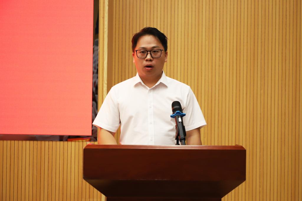 入党积极分子教师代表陈文靖老师作学习心得发言。他表示自己作为一名新时代教师,要牢记党的宗旨,在各项工作和活动中起先锋带头作用,与时俱进,开拓创新,全心全意为教育和学生服务,做一名称职的党员教师。