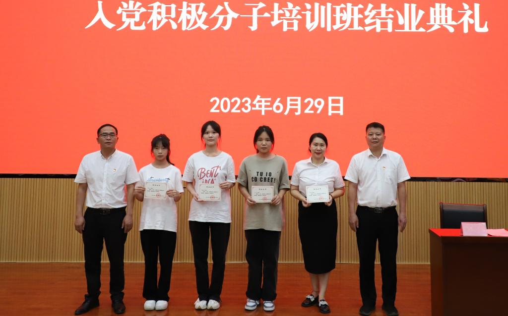 最后,与会领导向学员代表们颁发结业证书,结业典礼在热烈的掌声中圆满结束。通过本次培训,加深了学员们对中国共产党的认识,端正了入党动机,更加坚定了早日加入党组织的信心和决心。