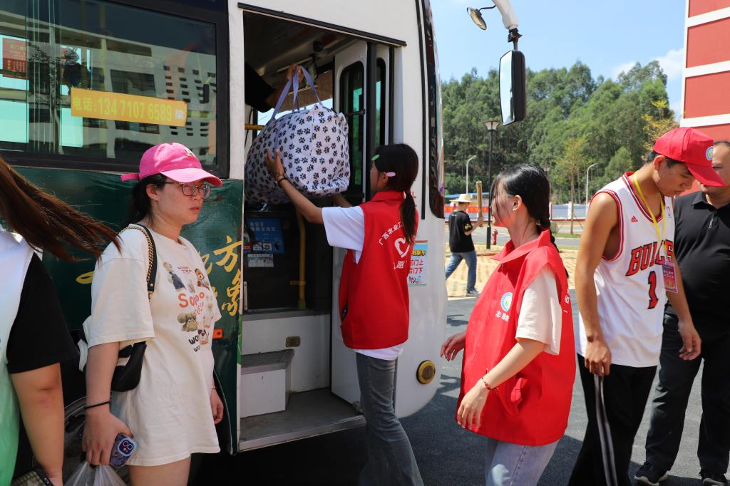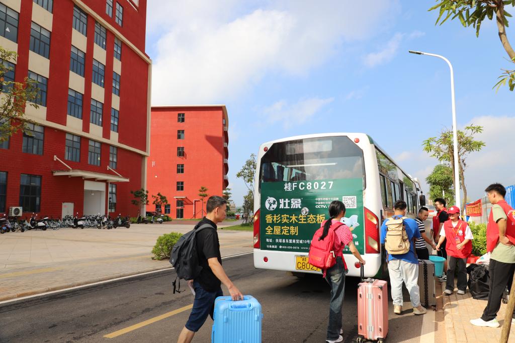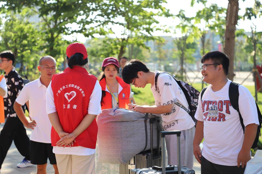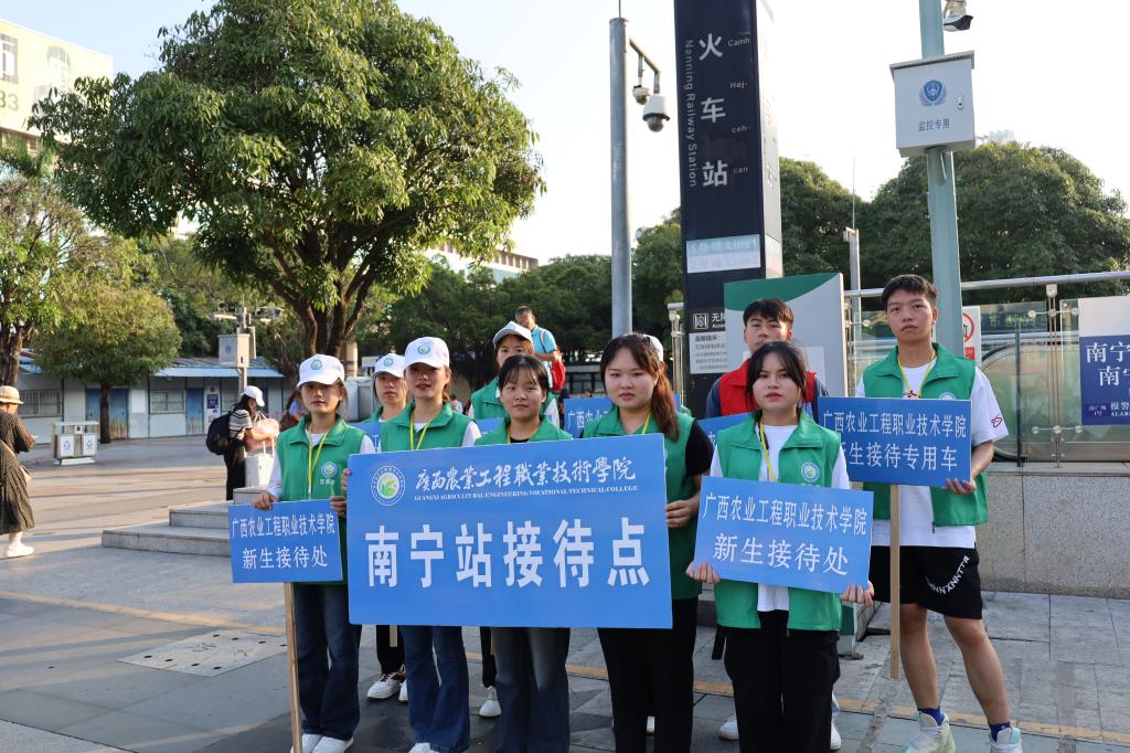 南宁站、南宁东站、琅东客运站、扶绥南站,四个车站全部安排接站车,直达校园,全力为新生报到保驾护航,为方便广大新生搬运行李,校内还安排多辆中转车,从校门口到学生公寓楼点对点接送。