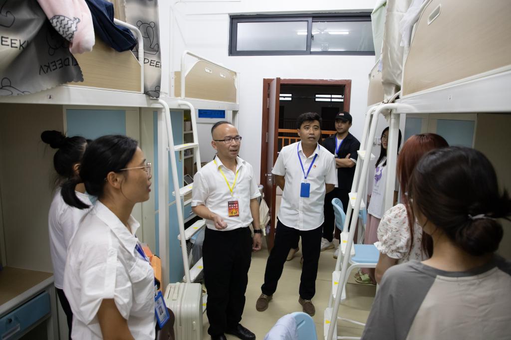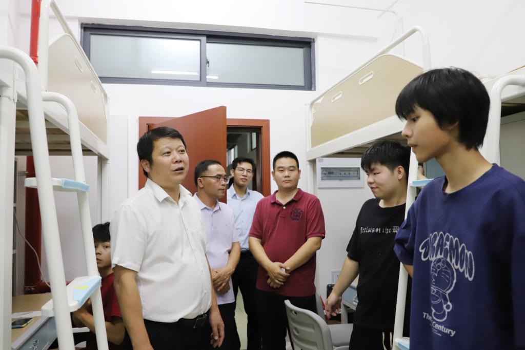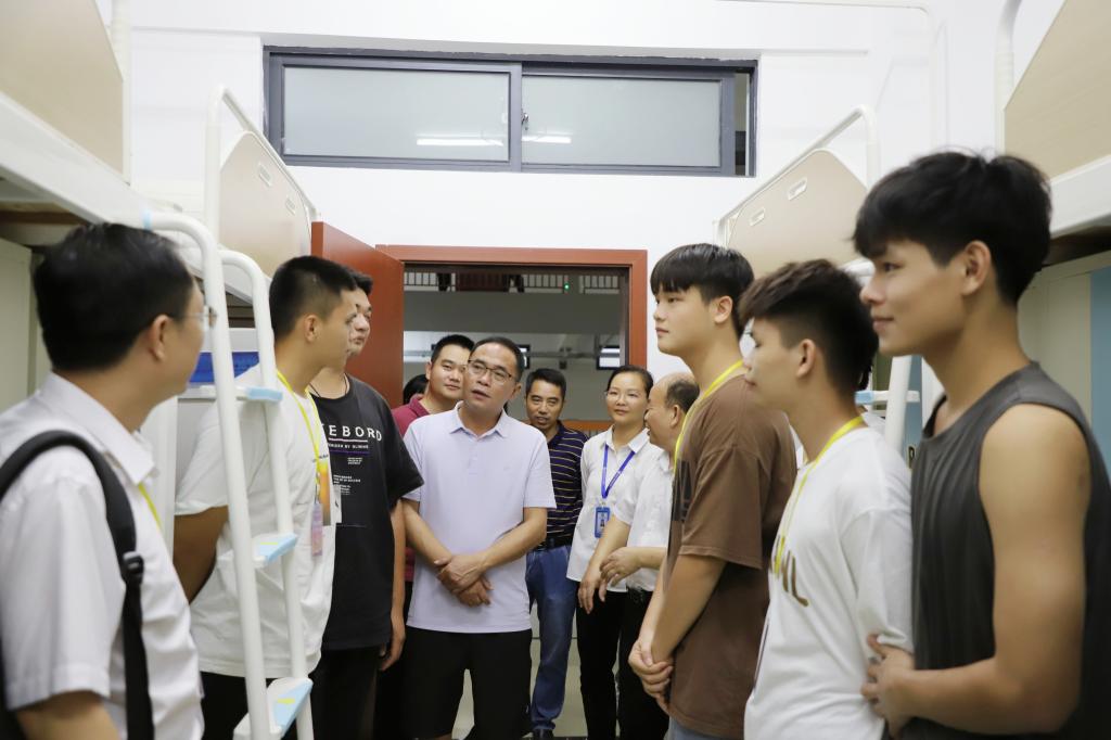 在新生报到期间,学校党委书记马敏,副书记、纪委书记章红平,副校长李祖培、莫嘉凌、覃效敏,总会计师韦炜带队来到新生报到处视察迎新情况并且走进新生宿舍同新生亲切交谈。