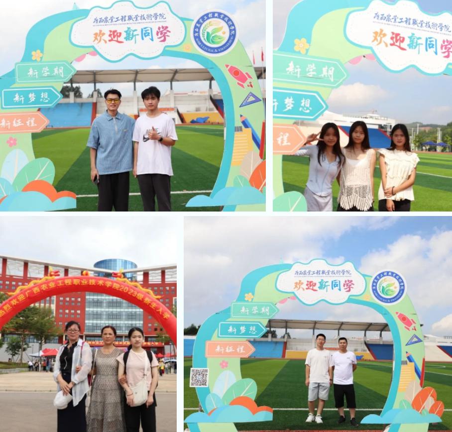 (新生和家长在校园里合影)