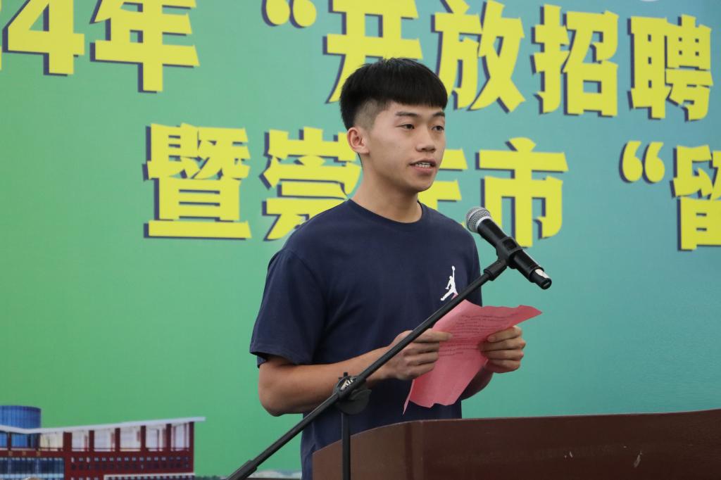 畜牧兽医212班黄有贵作为学生代表发言。他表示感谢学校的精心栽培和企业提供的优质就业机会,就业是实现自我价值的重要阶段,自己将会在工作岗位上不断学习新知识、新技能,以积极的态度面对每一个挑战,用专业知识为社会、为国家做出力所能及的贡献。