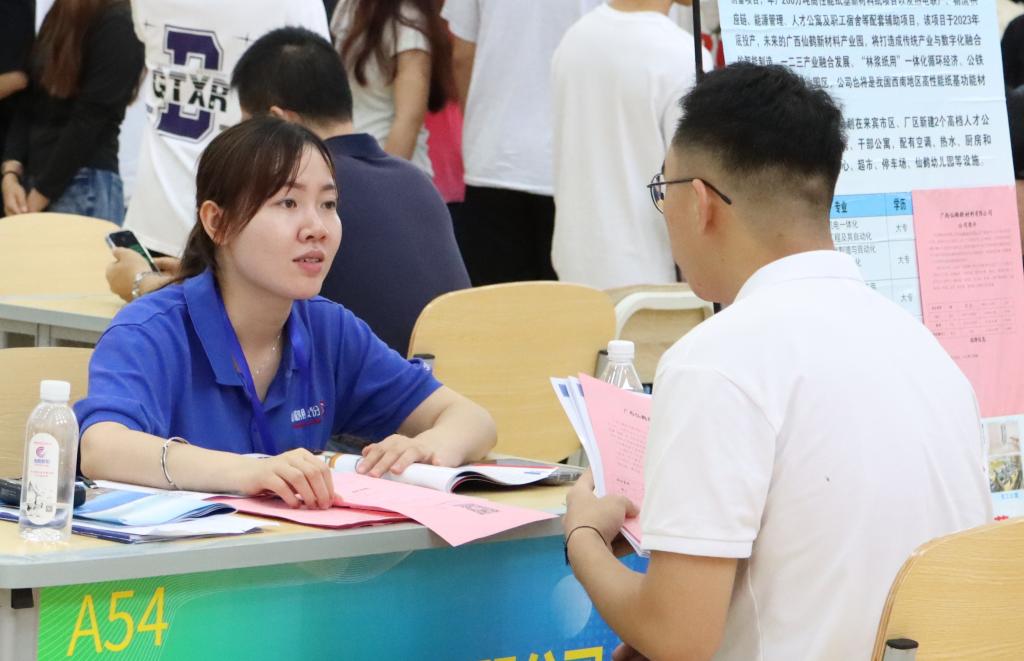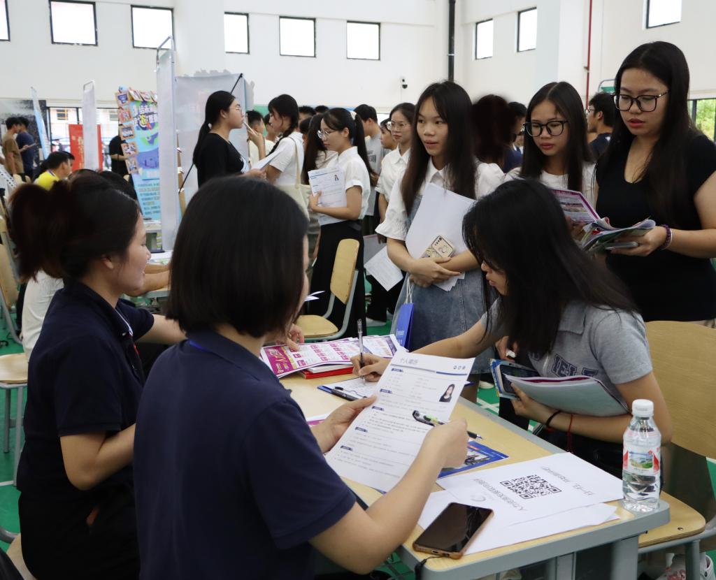 据悉,本次双选会邀请了全球锂离子电池领域的领军企业欣旺达动力科技股份有限公司、中国最大的自营式电商企业广州晶东贸易有限公司(京东)、中国知名汽车制造企业奇瑞汽车服务有限公司、农业产业化国家重点龙头企业广西扬翔股份有限公司等来自区内外共125家知名企业参会,提供了近7000个岗位,涵盖了农林牧渔业、住宿和餐饮业、制造业、信息和传输、软件和信息技术服务业、教育、金融业等行业,吸引了涉及13个专业方向,近4000名学生参加。2024年春季学期以来,学校各二级学院已举办大型实习就业双选会共3场,以线上线下结合的形式组织开展专场招聘宣讲会30余次,共提供了实习就业岗位超2万个。