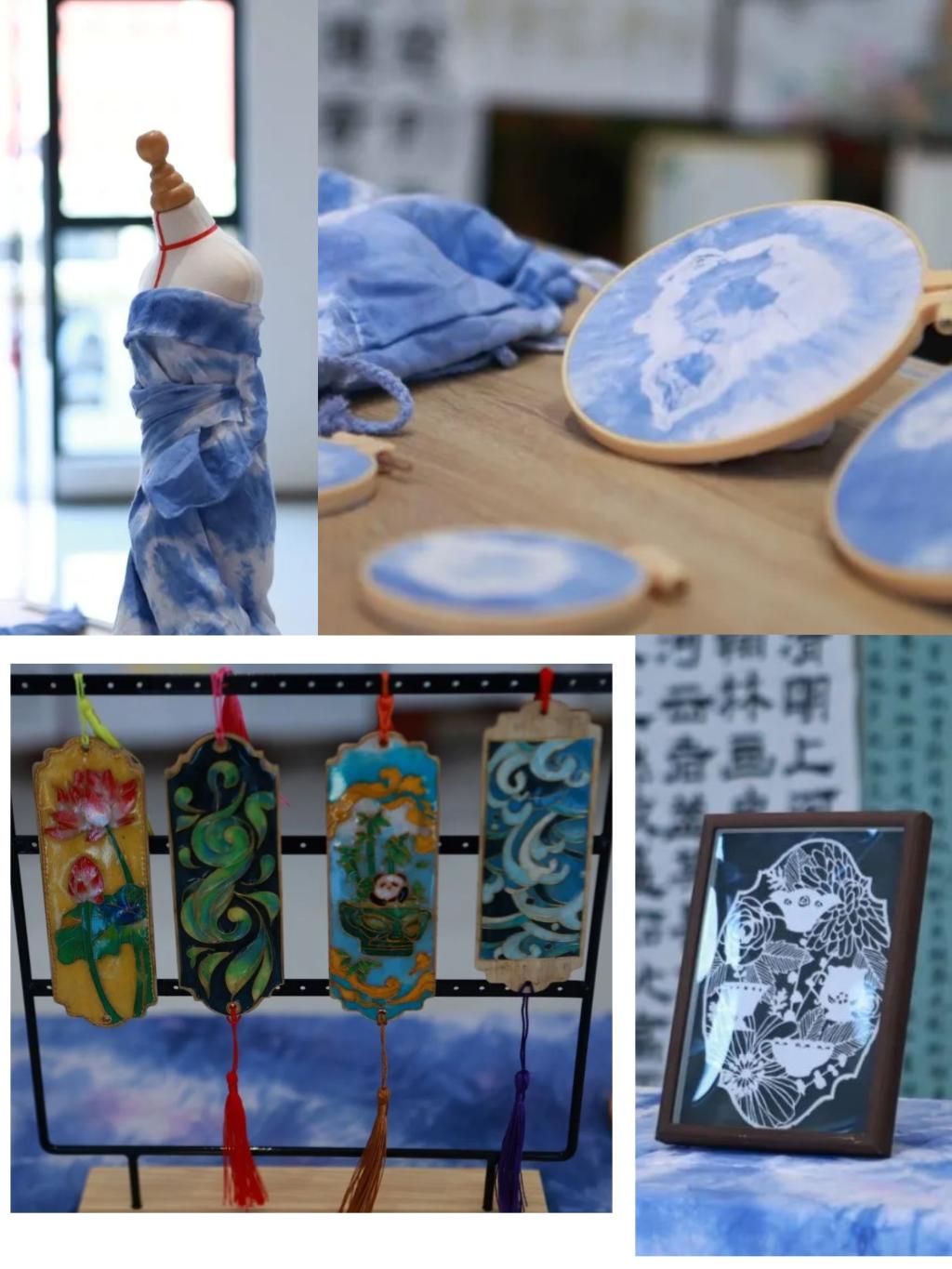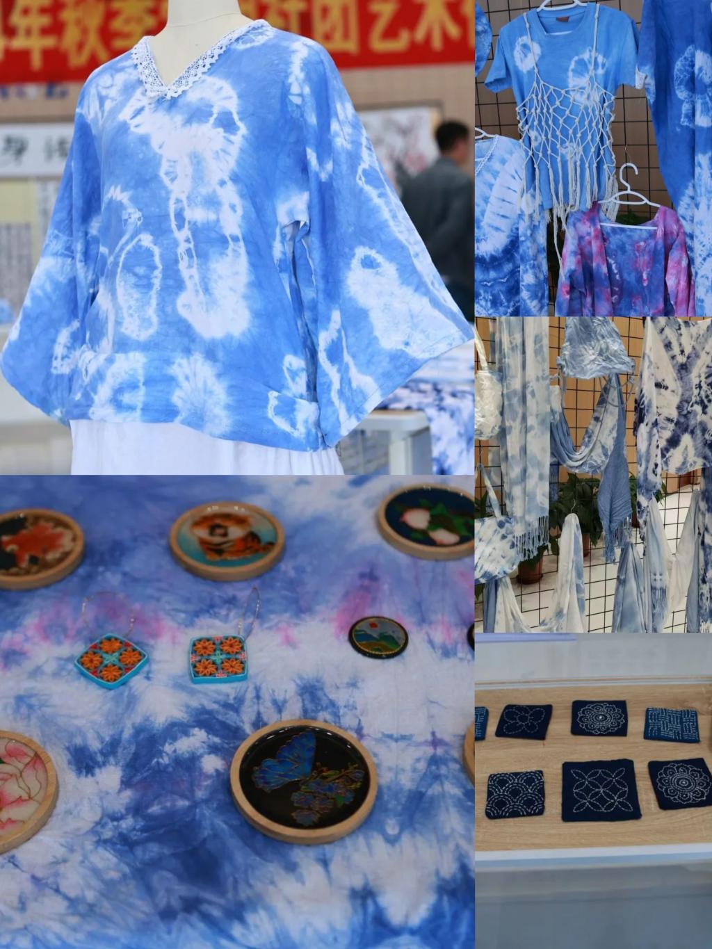 踏入创意手工社展区,仿若踏入一个蓝白相间的梦幻世界。扎染,这项传承千年的民间工艺,在社员们手中焕发出全新活力。从选材起始,每一块纯棉布料、每一只质朴杯垫,都被视作承载艺术的“璞玉”。精心折叠、巧妙捆扎,或用橡皮筋勒出规则几何,或凭棉线缠绕勾勒随意线条,社员们指尖飞舞,宛如施下神奇“魔法”,将平凡物什变成待绘“画卷”。当布料浸润于染料缸,色彩似灵动精灵,沿着捆扎缝隙、折叠边角渗透、交融,“偶然”与“必然”碰撞,诞生独一无二纹理——似云雾缥缈、像水波潋滟,更如繁花绽于春日,传统扎染纹样与现代创意构思水乳交融,诉说着别样故事。