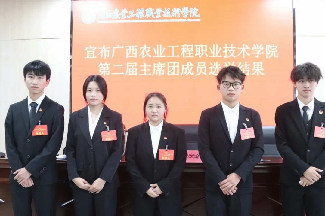 PP电子游戏网站第二次学生代表大会正式会议在开幕式结束后召开。会上,代表们审议通过了《PP电子游戏网站学生会章程(草案)》,听取并审议通过《PP电子游戏网站第二届主席团成员选举办法(草案)》,选举2023级牙江涛、农茜、罗家豪,2024级廖伯淞、何丹5名同学为PP电子游戏网站第二届学生会主席团成员。