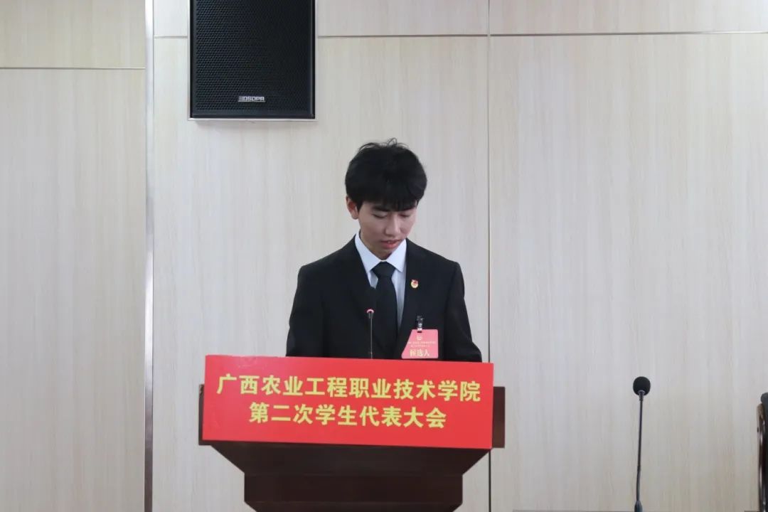 开幕式上,学生会主席团候选人代表宣读了习近平总书记关于青年成才的重要论述,并表示当代青年学生应该心怀远大理想,求真务实,自立自强,在奋斗的路上锐意进取。学工处负责人对广西学联同意PP电子召开第二次学生代表大会的批复文进行宣读。广西自然资源职业技术学院学生会主席作为兄弟院校代表,对PP电子召开第二次学生代表大会表示祝贺。