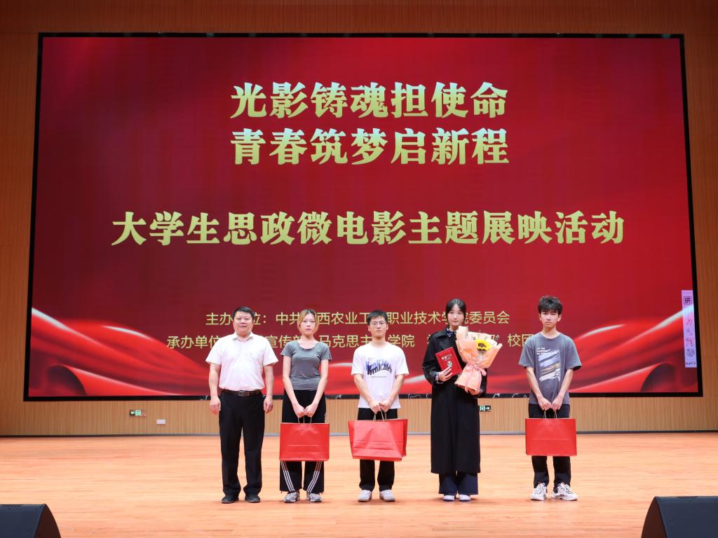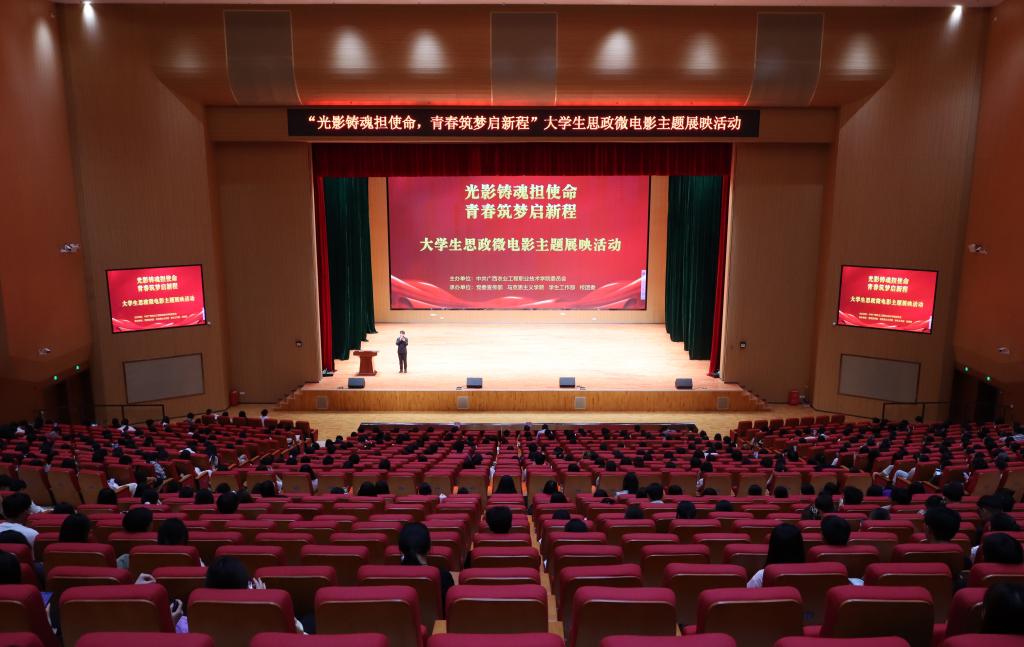 为营造良好的校园文化氛围,创新思政教育形式,促进学生思想道德素质的提升。3月25日晚,由学校党委主办,党委宣传部、马克思主义学院、学生工作部、校团委承办的“光影铸魂担使命 青春筑梦启新程”大学生思政微电影主题展映活动在学术交流中心举行。学校党委书记马敏,党委副书记、校长李振科,副校长李祖培、覃效敏,各部门、二级学院负责人,马克思主义学院全体教师,全体辅导员,全校各班班团干及涉农专业学生代表等千余人齐聚一堂,共同见证这场视听与思想的双重盛宴。