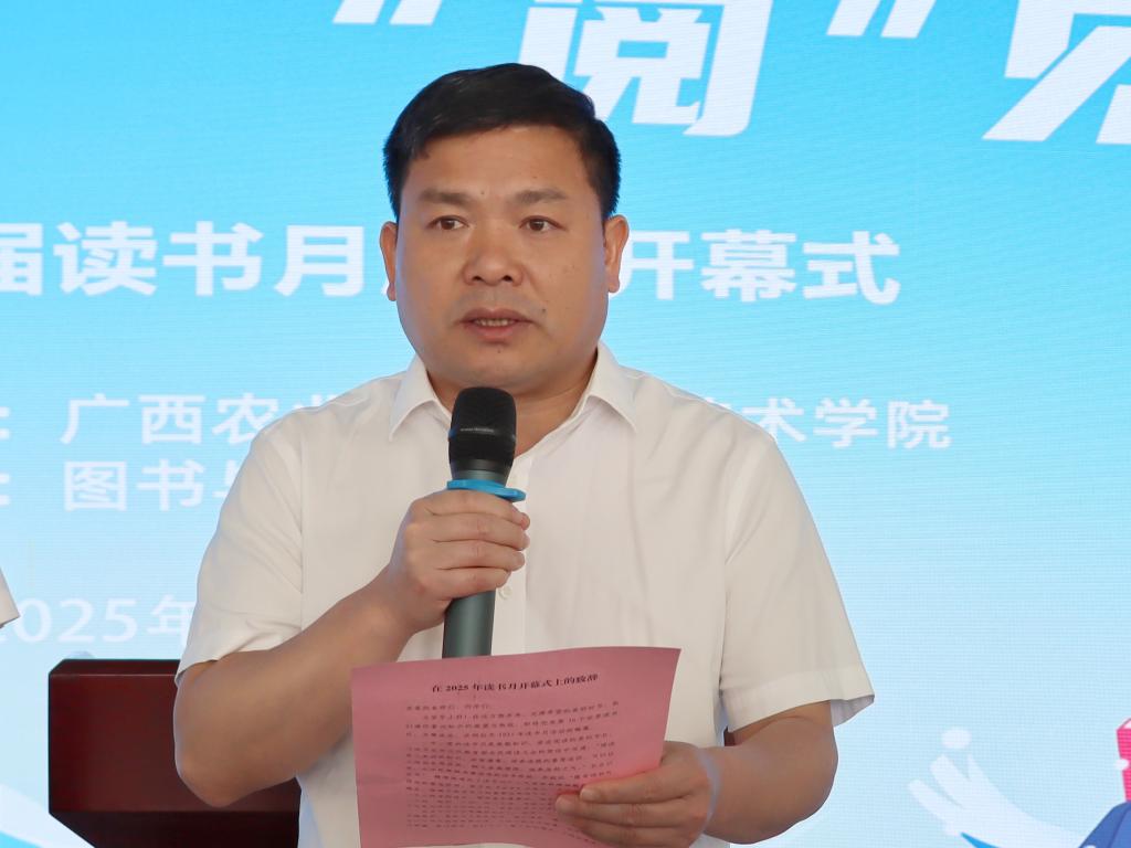 李振科校长为本次读书月活动开幕式致辞。他表示,中华民族自古以来就有着深厚的读书传统,阅读不仅是为了获取知识、开阔眼界,更是为了启发思考、提升境界。他提出,要坚持以铸牢中华民族共同体意识为引领,深入挖掘中华优秀传统文化的深厚底蕴。要营造浓厚氛围,在书海中领略美丽景致、领悟深邃思想,愉悦心灵、提升境界。要以青春筑梦未来,让阅读成为一种习惯和生活方式,在春风化雨中享受阅读和文化活动带来的精神愉悦与人生启迪,为未来发展注入持久的精神力量,通过知识的积累和智慧的启迪,实现自己的人生梦想。