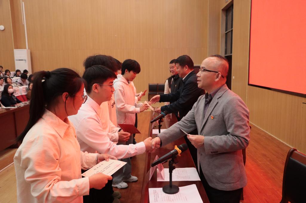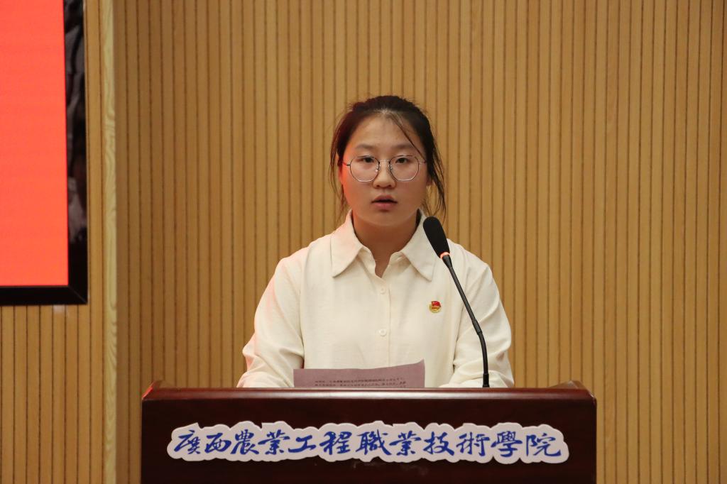 入党积极分子代表蒋慧婷同学作学习心得发言。她表示,通过党课学习,思想上受到了深刻教育,精神上得到了极大鼓舞,接下来将继续努力学习党的知识,用党的先进思想武装自己的头脑,用实际行动践行对党的忠诚与向往,努力成为一名合格的大学生党员。