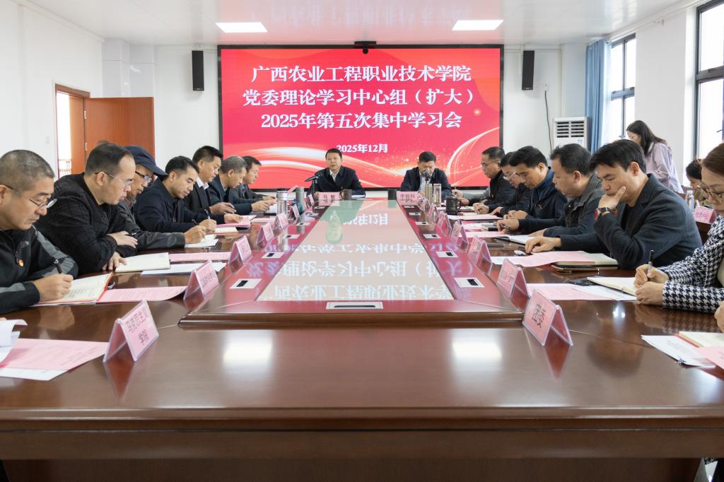 12月18日,学校举行党委理论学习中心组(扩大)集中学习会,专题学习党的二十届四中全会精神。学校党委书记马敏,党委副书记、校长李振科,副校长李祖培、莫嘉凌,总会计师韦炜参加学习。广西农业职业技术大学党委宣传部部长苏义强,各部门、二级学院负责人,各党支部书记、支委,各二级学院组织员列席旁听。