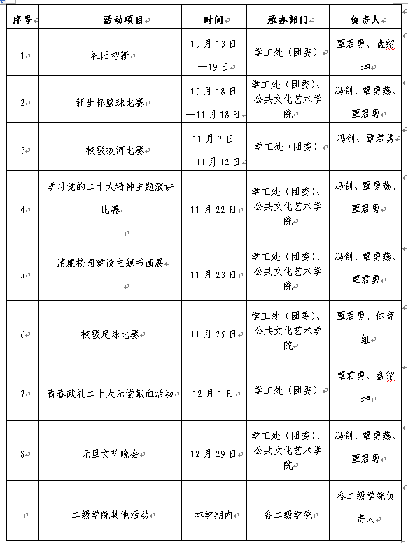 文体活动深受学生欢迎,学校在文体活动主题和形式上不断创新和发展,有效提升校园文化活力和师生的凝聚力。如:通过开展学雷锋实践活动,培养学生乐善好施的素养和吃苦耐劳的精神,也树立公而忘私的共产主义风格,奋不顾身的无产阶级斗志,教导学生要在平凡的岗位上作出不平凡的成绩,践行为共产主义事业奉献的誓言。2022年,学校文体活动坚持以学生身心需要为出发点,以学生团员、学生干部、普通学生为载体,以学生满 意为目标,积极开展了丰富多彩的校园文体活动,受到了学生的喜爱和称赞。