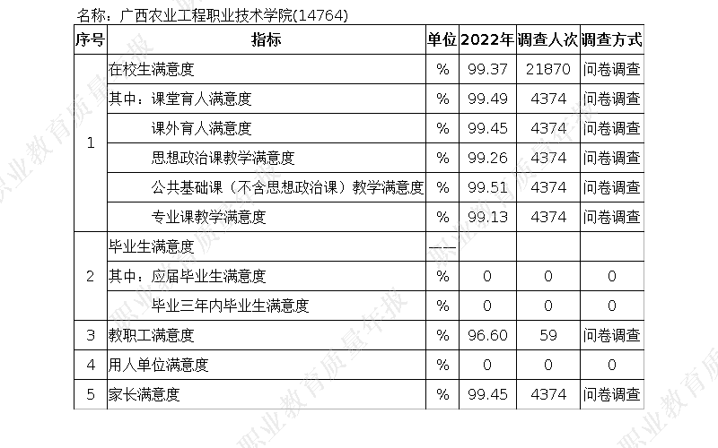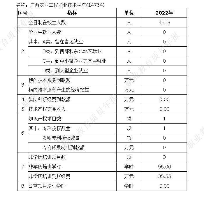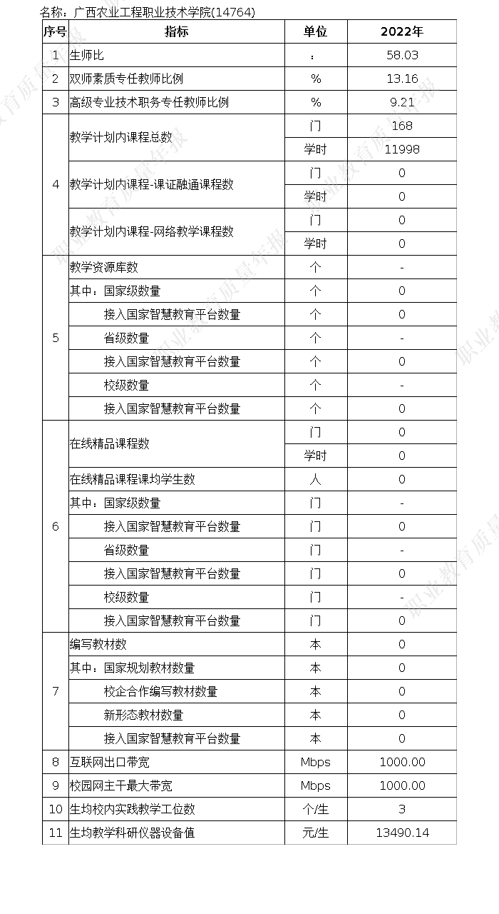 (一)贯彻国家、地方政策促落实。学校深入贯彻落实《国家职业教育改革实施方案》《职业教育提质培优行动计划(2020—2023年)》《关于深化职业教育改革的若干意见》《中华人民共和国职业教育法(2022年修订)》以及《广西教育现代化 2035》《自治区党委 人民政府关于贯彻<国务院关于加快发展现代职业教育的决定>的实施意见》等文件精神,编制了学校“十四五”师资队伍建设发展规划,着力贯彻落实立德树人根本任务,推进教育教学相关标准、人才队伍建设、学校基础设施建设、专业建设、教科研、“1+X”证书制度试点等工作,学校教育教学工作运行状况良好。