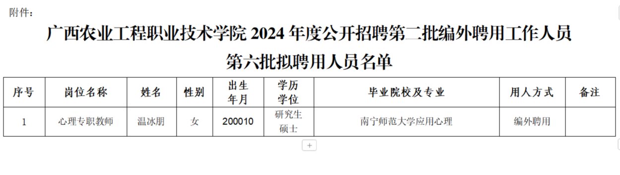 根据《广西壮族自治区事业单位公开招聘工作人员实施办法》(桂人社发〔2011〕155号)等规定,经通过资格审查、笔试、面试、考核和体检等程序,拟聘用温冰朋同志为我单位工作人员,现予以公示(详见附件),公示期7个工作日。如对拟聘用人员的聘用资格有异议,请以书面形式并署真实姓名和联系方式,于2024年10月31日前邮寄或直接送达PP电子游戏网站组织人事处(邮寄以邮戳时间为准)。群众如实反映问题受法律保护。