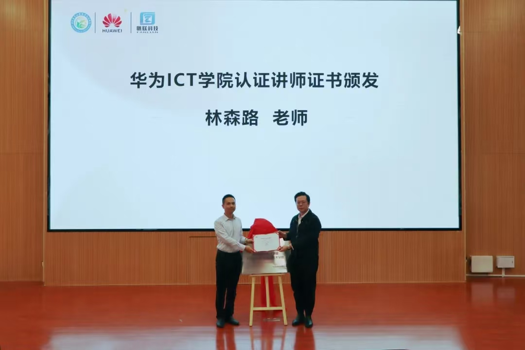 华为广西人才生态总监为人工智能学院教师颁发华为ICT学院认证讲师证书