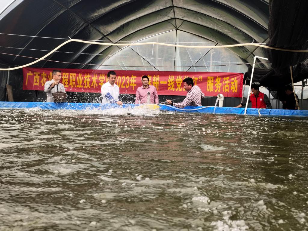 3月10日,学校海洋渔业党支部组织研究、推广、生产等部门专家、党员到天等县都康乡降祥村内降屯陆基圆池流水养殖加州鲈鱼示范点开展现场技术指导,并通过采取现场查阅养殖档案、现场查看养殖基地建设、现场捕鱼和随机抽样测量等方法开展现场测产,检查试验养殖加州鲈的生长情况,为养殖业发展提供技术指导。