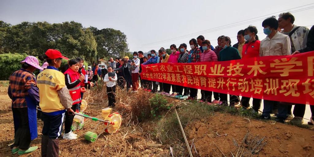 3月15日,学校承办“大新县2022年高素质农民培育提升行动培训班”,培训期间到田间地头开展实地教学,此次培训班共有100名学员参训。