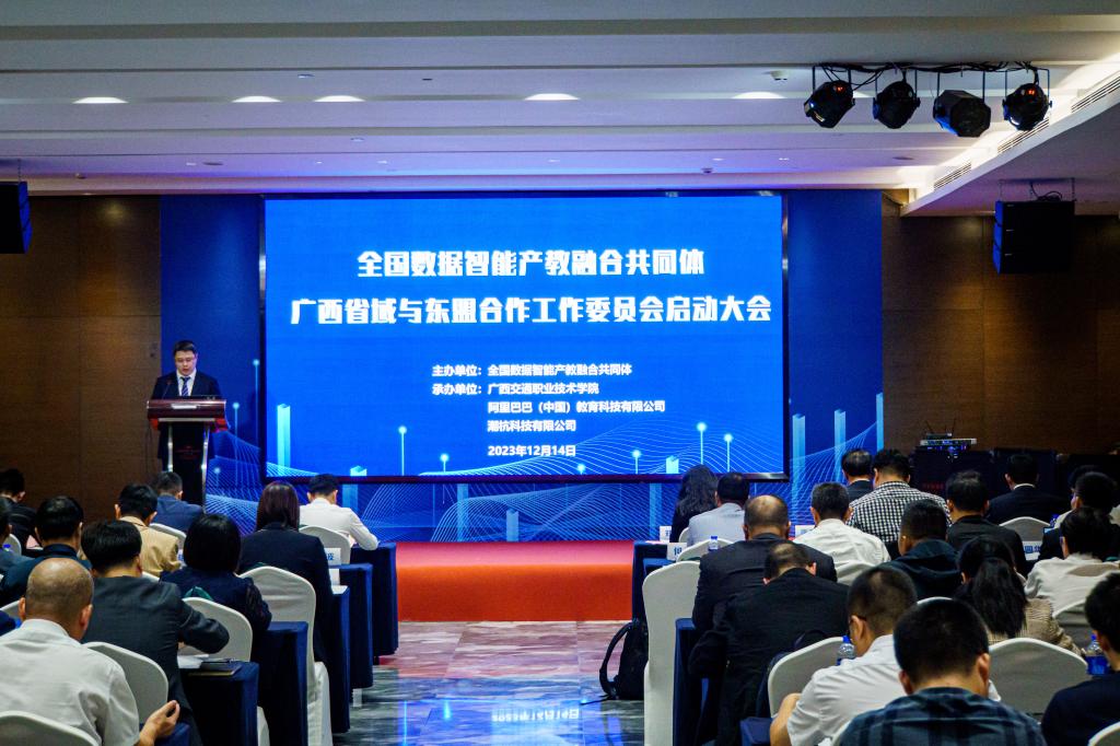 12月14日,全国数据智能产教融合共同体广西省域与东盟合作工作委员会启动仪式在南宁举办,学校党委书记马敏受邀参加。启动大会由全国数据智能产教融合共同体主办,阿里巴巴(中国)教育科技有限公司、广西交通职业技术学院、潮杭科技有限公司承办。